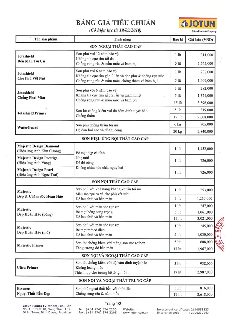 Trong bảng giá sơn Jotun tổng hợp bao gồm sơn lót Jotun với nhiều dòng cao cấp và trung cấp đáp ứng khách hàng