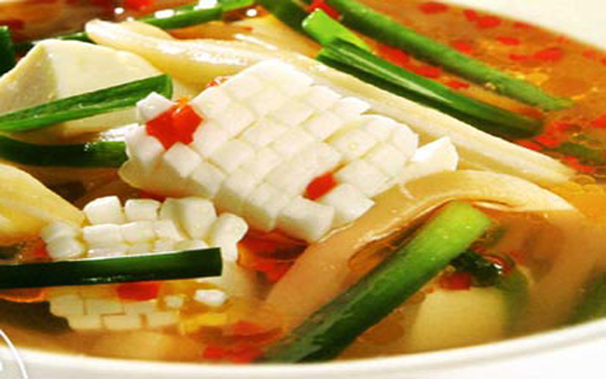 - Chiên vàng giòn đậu phụ, cắt thành sợi (hoặc nghiền nát).