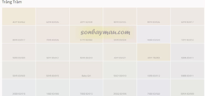 Bảng màu sơn Dulux họ màu trắng xám cho khách hàng tham khảo